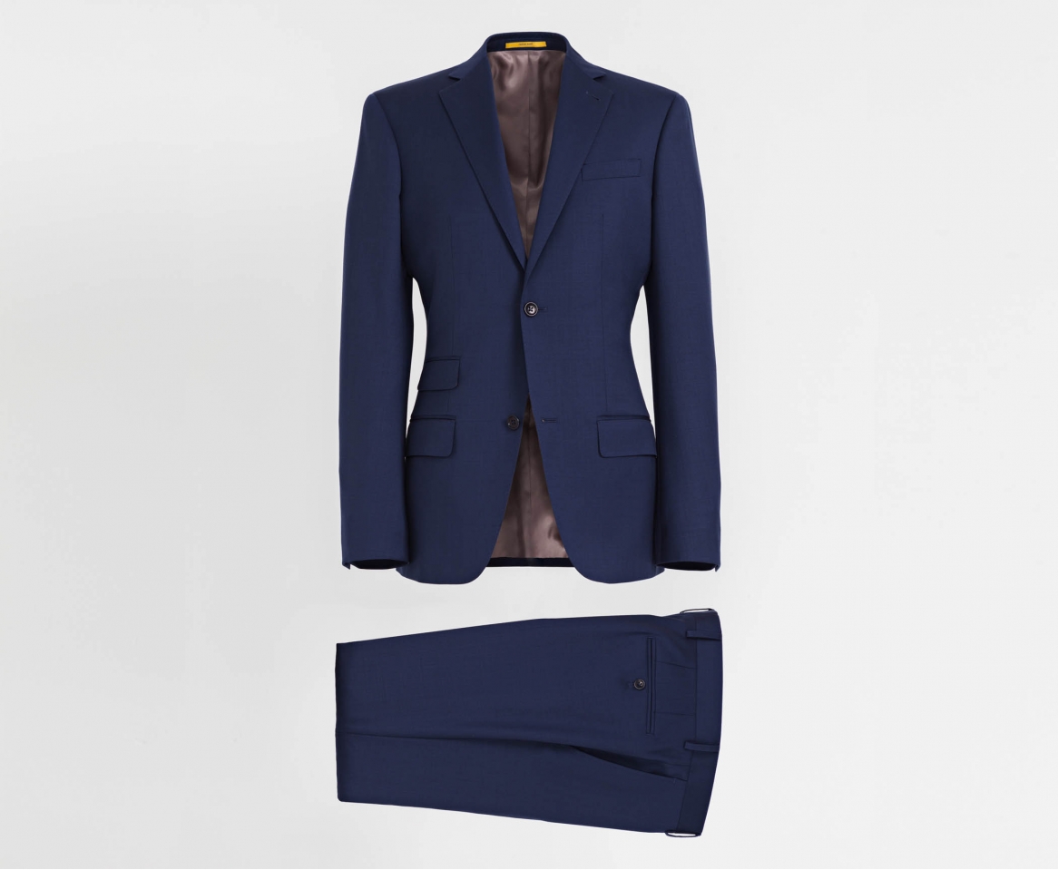 Tailored for warm seasons, the Olavide Ink Blue Suit is made from lightweight Super 120’s wool with a smooth cupro lining. Bold yet refined, it’s perfect for stylish city wear. Pair it with a light blue tie and a blue oxford shirt.